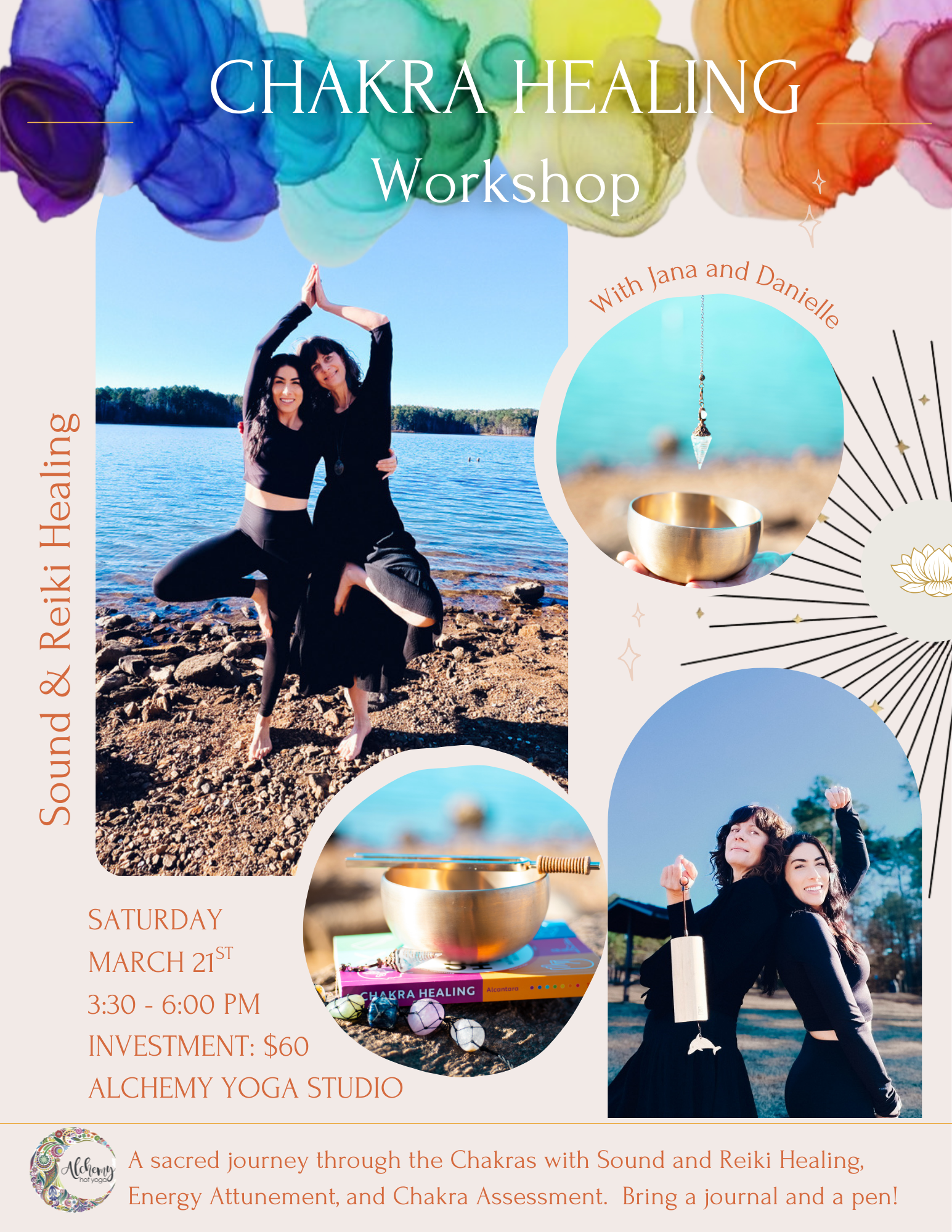 Join us at Alchemy Yoga Studio for a 2.5-hour immersive Chakra Healing Experience designed to restore balance, awaken vitality, and reconnect you to your energetic center.